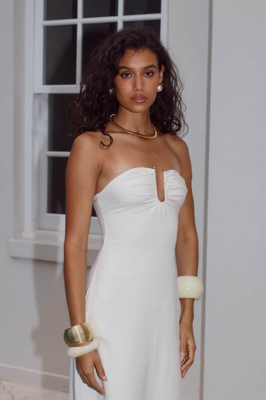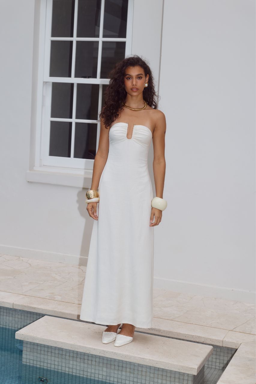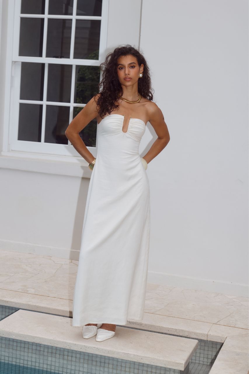 With a U shaped strapless neckline and bust ruching, our Martha Maxi Dress is perfect.
